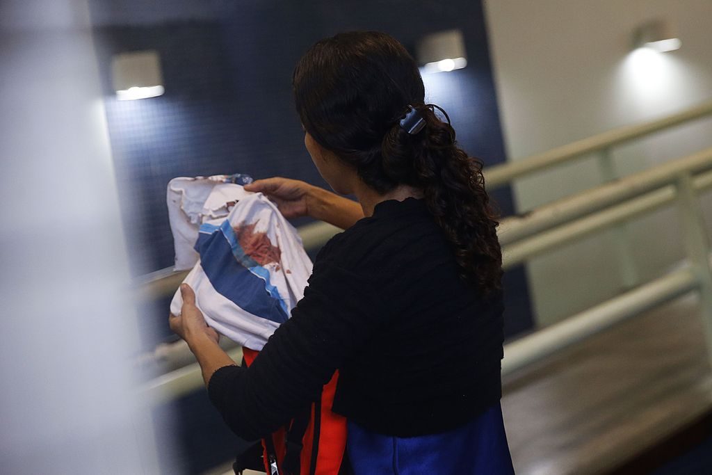Indignada, a diarista culpa a polícia pela morte do filho. Os pais de Marcos Vinicius afirmam que testemunhas disseram a eles que os tiros teriam partido de um blindado, que se deparou com Marcos Vinicius na rua e atirou. Bruna afirma ainda que a polícia chegou a impedir que a ambulância entrasse para socorrê-lo na comunidade.