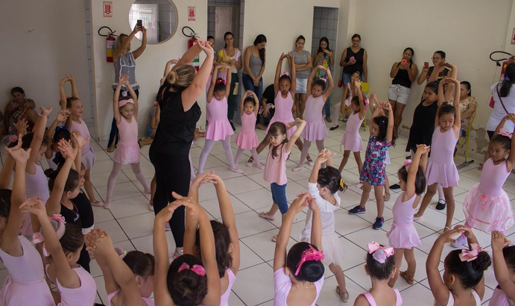 Ela falou sobre os benefícios da atividade. “Eu cobro muito que elas tenham responsabilidade, coordenação motora, postura, leveza, beleza e dinamismo, também”, contou.