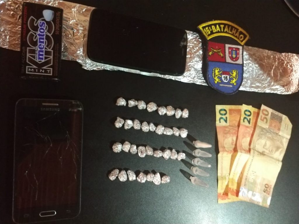 Ele foi abordado pela Polícia Militar durante patrulhamento pelo local e carregava uma porção de crack. Na residência dele os policiais encontraram mais 30 pedras de crack, um pino de cocaína cheio e quatro vazios. Também foi apreendida uma quantia em dinheiro e um celular.