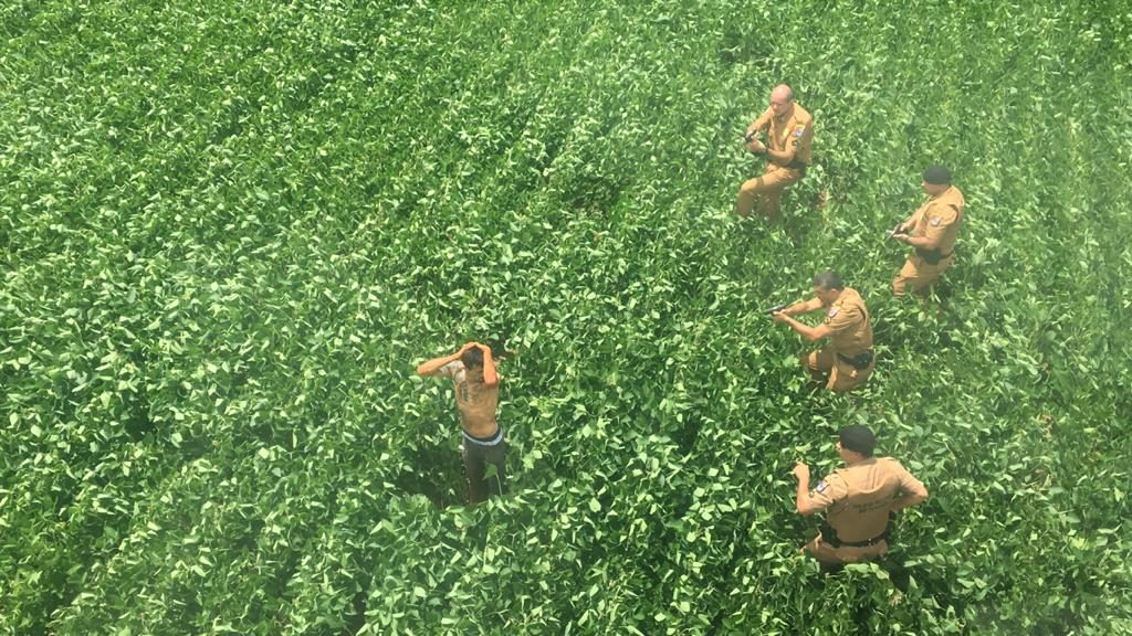 Equipes da 4ª CIPM (4ª Companhia Independente da Polícia Militar) com apoio do helicóptero Falcão 07 prenderam Doni Passarinho Moreira, de 29 anos, na tarde deste sábado (4). Ele assaltou uma padaria na zona norte de Londrina e foi preso no meio de uma plantação de soja depois de fugir do local do crime.