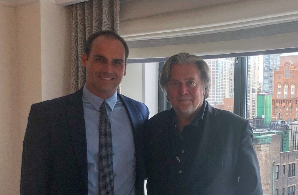 It was a pleasure to meet STEVE BANNON,strategist in Donald Trump’s presidential campaign.We had a great conversation and we share the same worldview.He said be an enthusiast of Bolsonaro’s campaign and we are certainly in touch to join forces,especially against cultural marxism. pic.twitter.com/ceHoui6FH5